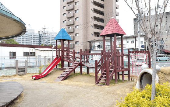 目の前の岐阜県庁前公園では、四季を通して様々な自然と触れ合います。