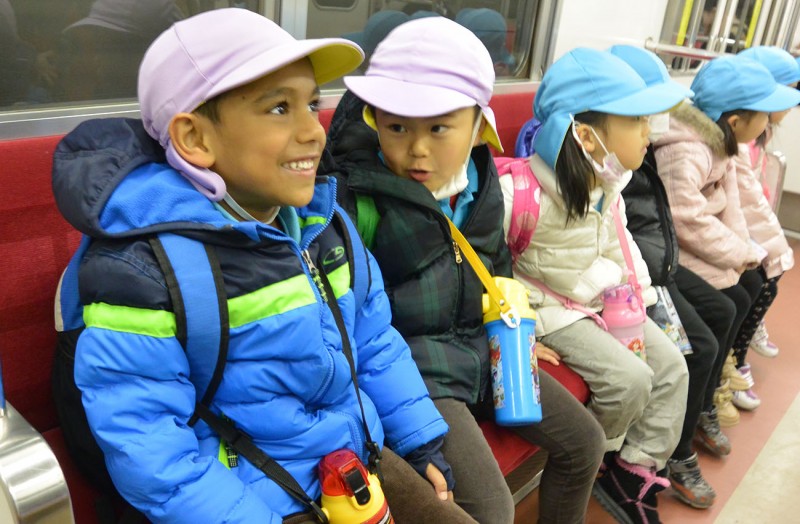 K2,3のクラスの子どもたちと地下鉄に乗って、名古屋市科学館へ課外保育に行ってきました!子ども達と切符を購入していざ出発!電車の中ではしっかりマナーを守って乗ることができました。ドキドキの乗り換えも難なくこなし、球体の建物が見えてくると子ども達は大興奮!科学館の中でも好奇心は止まりません。1月のトピックスタディーのテーマでもある〝Dinosaurs″の模型を見て「Soo, Big!!」と驚いたり、子ども達の身長よりはるかに高く巻き上がる〝Tornado″の迫力に圧倒されるなど、科学の不思議に沢山触れる事ができました。帰りの電車の中では、よっぽど疲れたのか、うとうとする様子が見られ、刺激いっぱいの一日となりました。