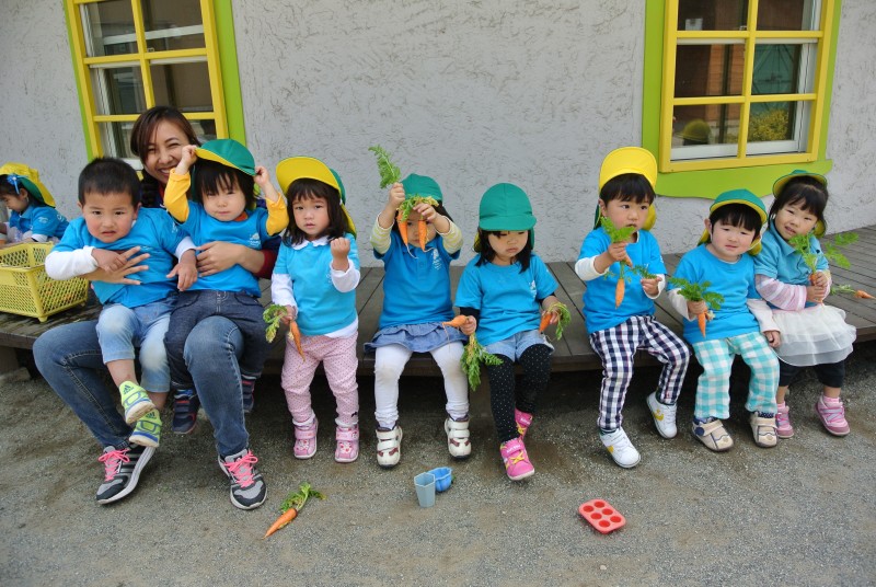 去年の12月みんなでニンジンの小さな小さな種を蒔きました。小さな種が本当にニンジンになるのかな・・・と。子どもたちは、とても不思議そうな顔をしていました。芽が出て、葉が少しずつ育つ様子を見ながら、ニンジンの収穫をとても楽しみにしていました。春になり、どんどん育ってきたニンジンといよいよご対面!!小太りニンジン、かわいらしいニンジン・・・子どもたちは、大興奮でした。5月は、さつま芋の苗植えに挑戦します。今年は、どんなお芋と出会えるか楽しみだね!
