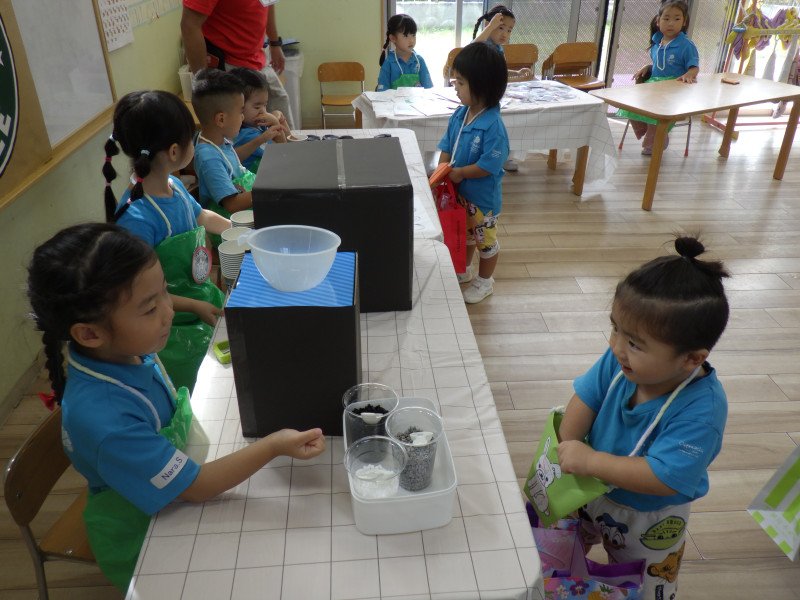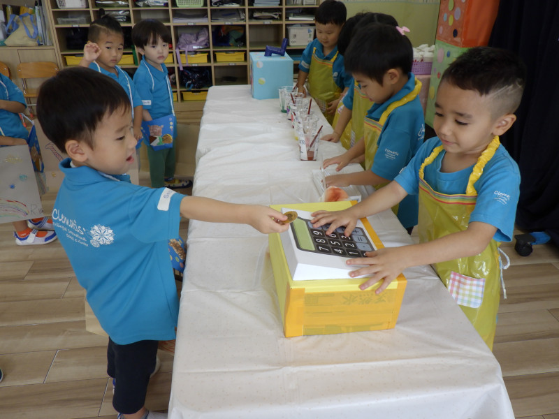 ✨『Shopping Game Day!!』✨ 今日は、子どもたちが心待ちにしていたお店やさんごっこの日。園内は活気いっぱい、あちこちから「Welcome!」の声が響いていました。 K3は「マインクラフト体験ショップ」弓矢を打つ体験や、マインクラフトのブロックで実際に遊べるコーナーがあり、大盛り上がりでした🎮✨ K2は「Coffee & Book」コーヒー豆を自分で選んで味わえる本格スタイルに加え、好きな本を手に取ることもでき、まるで本物のカフェのようでした☕📚 K1は「オリジナルかき氷屋さん」。 たくさんの種類の中から好きなシロップを選び、その場でシロップをかけてくれるスタイルで、子どもたちもわくわく!🍧 もちろん未満児さんも大活躍!「Maze Box」を販売しました。最初にゲームに挑戦して、ボールが入った番号のBoxをゲットするという楽しい仕掛けで大盛り上がり!大人気でした🎁 子どもたちの真剣な表情や、達成感あふれる笑顔に心が温かくなりました♡ 次回はどんなアイデアが飛び出すのか…今から待ち遠しいですね!